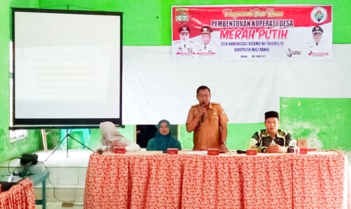 ELPUBIKA.COM,MUSI RAWAS– Badan Permusyawaratan Desa (BPD) bersama Pemerintah Desa (Pemdes) C Nawangsasi, Kecamatan Tugumulyo, Kabupaten Musi Rawas (Mura), Provinsi Sumatera Selatan (Sumsel) menggelar Musyawarah Desa Khusus (Musdessus) dalam rangka pembentukan Koperasi Desa (Kopdes) Merah Putih, di Balai Desa C Nawangsasi, Kamis (8/5/2025).