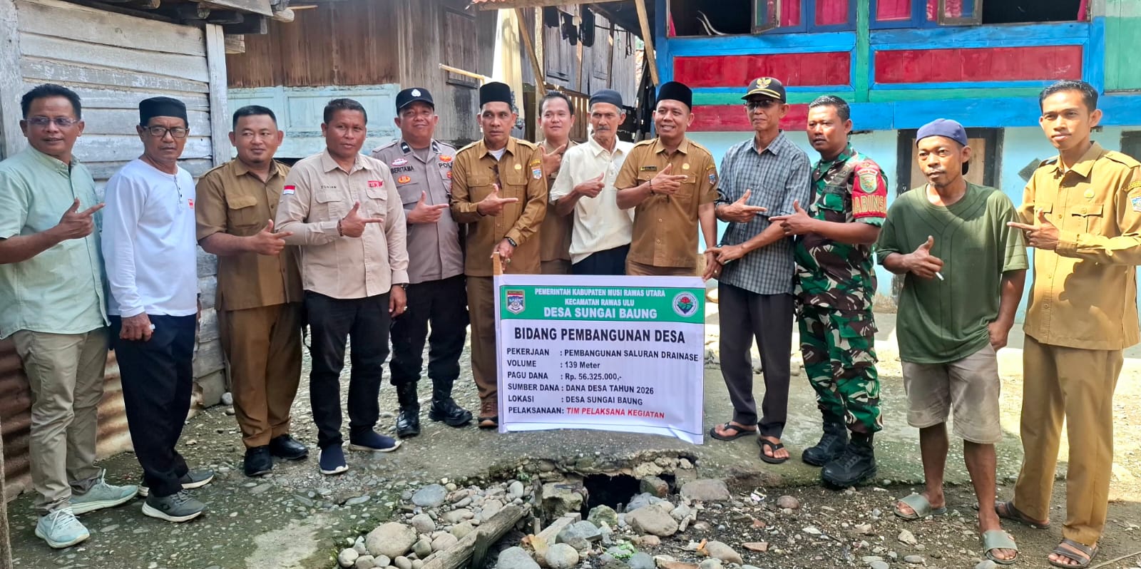 Selain kegiatan penyaluran BLT-DD, Pemerintah Desa Sungai Baung juga melaksanakan penentuan titik nol pembangunan drainase sepanjang 139 meter yang berlokasi di Dusun 7. Pembangunan ini bertujuan untuk meningkatkan infrastruktur desa serta mengurangi risiko genangan air saat musim hujan.