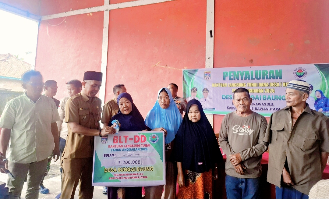 Elpublika.com-Pemerintah Desa Sungai Baung, Kecamatan Rawas Ulu, Kabupaten Musi Rawas Utara, menyalurkan Bantuan Langsung Tunai Dana Desa (BLT-DD) tahap I tahun 2026 kepada masyarakat penerima manfaat.