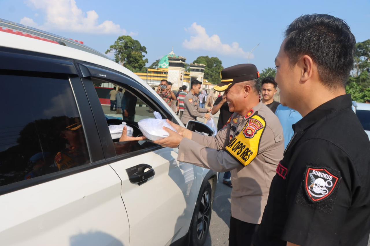 Ratusan paket takjil dibagikan kepada para pengguna jalan yang melintas, baik pengendara roda dua maupun roda empat. Kegiatan ini bertujuan untuk berbagi kebahagiaan dan mempererat hubungan antara kepolisian dengan masyarakat di bulan suci Ramadan.