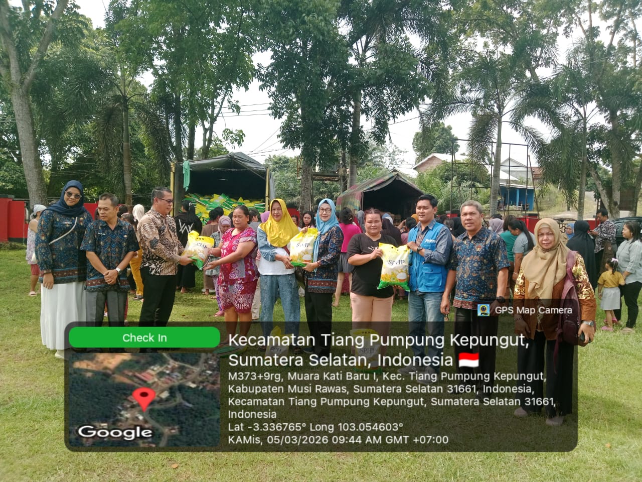 Kegiatan pasar murah tersebut dilaksanakan di halaman Kantor Kecamatan Tiang Pumpung Kepungut, Kabupaten Musi Rawas, Sumatera Selatan, Kamis (5/3/2026), dan disambut antusias oleh masyarakat yang sejak pagi telah memadati lokasi kegiatan.