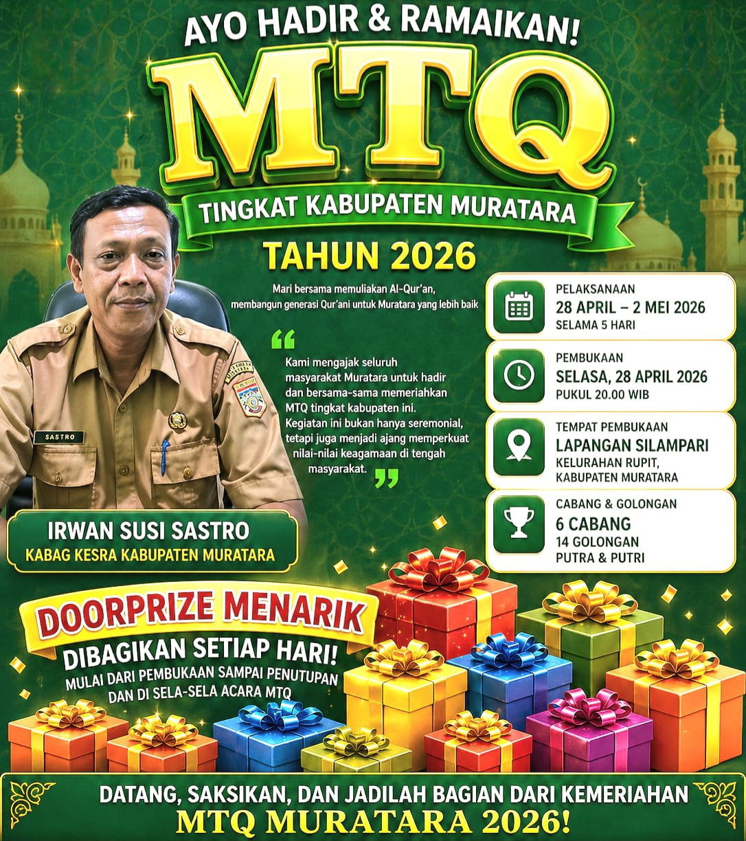 “Kami mengundang seluruh masyarakat Muratara untuk hadir dan bersama-sama meramaikan pembukaan MTQ tingkat kabupaten ini. Kegiatan ini bukan hanya seremonial, tetapi juga menjadi ajang memperkuat nilai-nilai keagamaan di tengah masyarakat,” ujarnya kepada wartawan media ini, pada 27 april 2026.