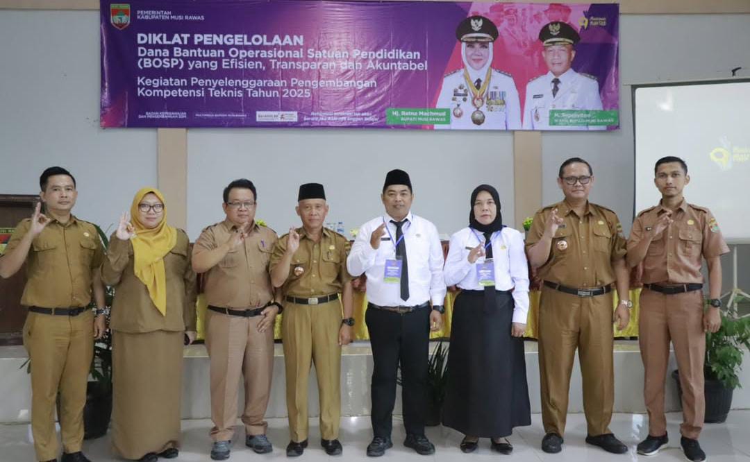 ELPIBLIKA.COM,MUSI RAWAS- Pemerintah Kabupaten (Pemkab) Musi Rawas (Mura) melalui Badan Kepegawaian dan Sumber Daya Manusia (BKPSDM) Kabupaten Mura, menggelar Diklat Pengelolaan Dana Bantuan Operasional Satuan Pendidikan (BOSP) Tahun 2025, Senin 28 Juli 2025. Tujuannya untuk meningkatkan kapasitas para bendaraa sekolah dalam mengelola BOSP.