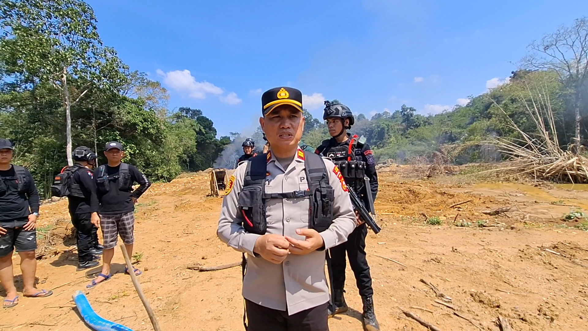 “Berdasarkan perintah Kapolres, hari ini kami bersama Sat Brimob Petanang melakukan penindakan tegas terhadap aktivitas PETI dengan menelusuri aliran sungai di wilayah Desa Pulau Kidak,” ujarnya.
