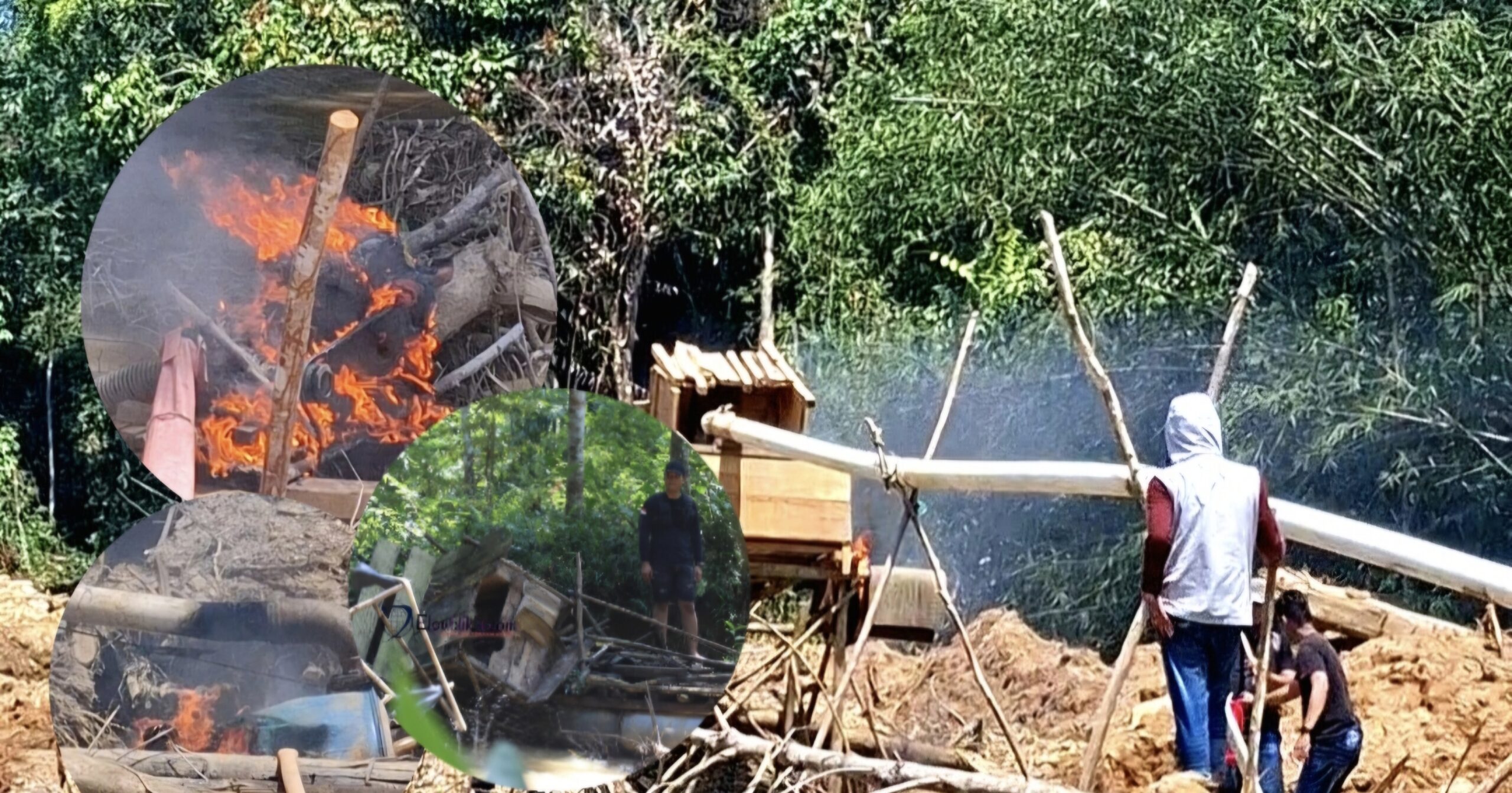 “Kami hanya menemukan bekas aktivitas PETI, tidak ada lagi kegiatan yang berjalan, tadi kita menemukan box dompeng pengayak mas termasuk mesin dompeng juga, ada yang dirusak dan ditenggelamkan dan ada juga yang dibakar” jelasnya.